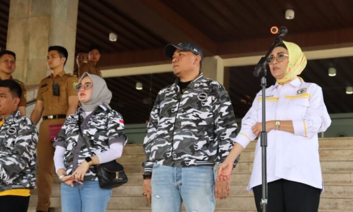 Peserta dilepas oleh Ketua Dewan Perwakilan Rakyat Daerah (DPRD) Sumsel Hj R A Anita Noeringhati, SH, MH, didampingi Ketua Dewan Pimpinan Daerah (DPD) Bapera Sumsel Andie Dinialdi dan Sekretaris Kms Umar Jaya Negara di Halaman Gedung DPRD Sumsel, Senin (15/5/2023).