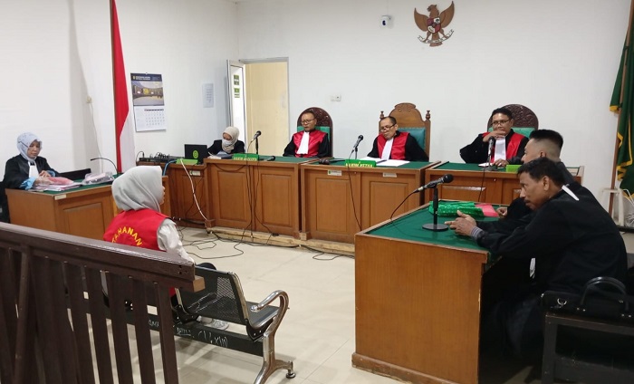 MENGAKUI----Sidang terdakwa Iga di ruang sidang PN Palembang, Kamis (23/4/2026). di persidangan Iga mengakui telah melakukan pencurian sejumlah perhiasan. (FOTO: SS1/ANTON R FADLI)