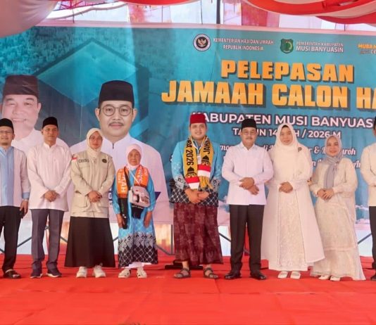 Sekayu, SumselSatu.com Ratusan calon jemaah haji asal Kabupaten Musi Banyuasin secara resmi dilepas keberangkatannya oleh Wakil Bupati Muba Abrur Rohman Husen. Pelepasan Jemaah Calon Haji Asal Kabupaten Muba Tahun 1447 H / 2026 M digelar di Hotel Gambo Sekayu, Minggu (26/4/2026). Dalam sambutannya, Wakil Bupati Muba Abrur Rohman Husen menegaskan, bahwa...
