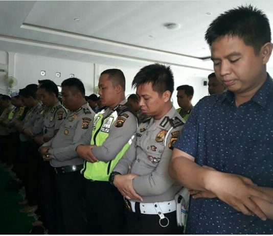 Polres Banyuasin menggelar Sholat Ghaib berjemaah di Mushola Nurul Iman, Mapolres Banyuasin. Selasa (2/10/2018) sekitar pukul jam 08: 00.