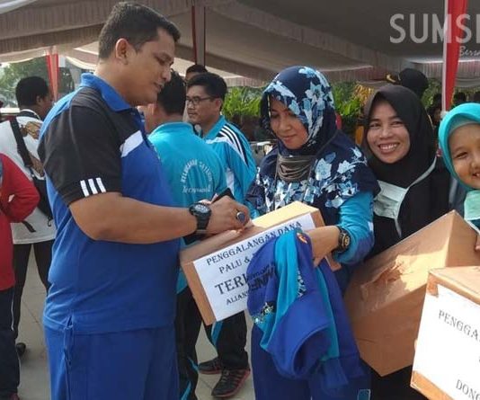 Bupati Banyuasin H Askolani, Kapolres Banyuasin AKBP Yudhi SM Pinem, Kajari LA Kamis, dan jajaran organisasi perangkat daerah (OPD) di lingkup Pemkab Banyuasin bersama Pemuda Aliansi, Jumat (5/10/2018), menggalang dana peduli korban bencana alam di Sulawesi Tengah (Sulteng).