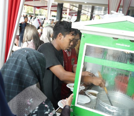Puluhan jajanan gerobak Usaha Mikro Kecil Menengah (UMKM) berjejer rapi di halaman Rumah Dinas Bupati Muba usai Salat Id berjamaah, Rabu (10/4/2024).
