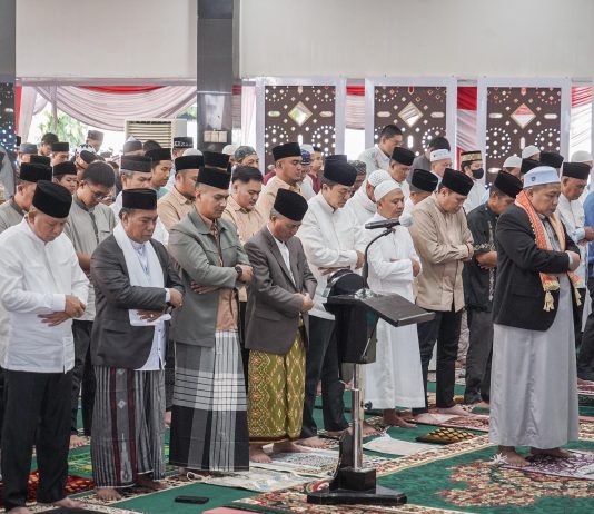 Tidak hanya bersama keluarga besar, putra daerah Desa Bumi Ayu, Kecamatan Lawang Wetan Muba itu juga membuka Rumdin Bupati Muba bagi warga untuk Salat Ied berjemaah.