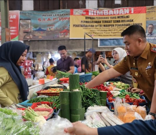 Sekretaris Daerah (Sekda) Kota Palembang Aprizal Hasyim melakukan inspeksi mendadak (sidak) ke Pasar Tradisional Lemabang dan Lotte Grosir PTC Mall, Senin (2/3/2026). Langkah ini diambil untuk menjamin stabilitas harga, ketersediaan pasokan, serta keamanan konsumsi pangan masyarakat selama Ramadan 1447 H.