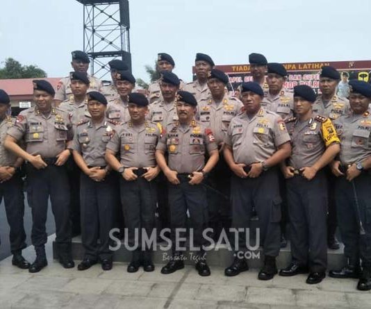Supervisi Dankor Brimob Polri Irjen Pol Drs Ikham Salahuddin mengecek kesiapan Sat Brimob Polda Sumsel melaksanakan tugas dalam menghadapi Pemilu 2019. Pengecekan dilakukan saat apel, Selasa (19/3/2019).