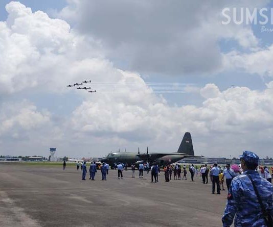 Tim aerobatik melakukan atraksi sebelum berangkat mengikuti even internasional di Langkawi International Maritime and Aerospace Exhibition 2019 di Malaysia. Suara gemuruh...