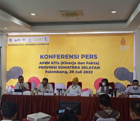 Forum Asset and Liabillites Committee Sumatera Selatan (ALCo Sumsel) yang beranggota seluruh Kantor Wilayah (Kanwil) Kementerian Keuangan di Sumsel merilis kinerja dan fakta (KiTa) Anggaran Pendapatan Belanja Daerah (APBN) periode Juni 2022 (Semester I Tahun 2022), Jumat (29/7/2022).