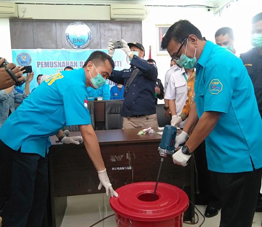 Badan Narkotika Nasional (BNN) Provinsi Sumatera Selatan (Sumsel), Kamis (13/12/2018), melakukan pemusnahan barang bukti narkotika yang telah mereka sita.