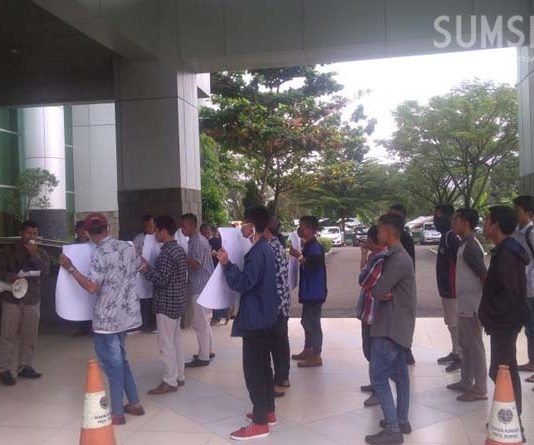 Puluhan massa aksi dari Barisan Pemuda Mahasiswa (BPM)Palembang, Sumatera Selatan (Sumsel) melakukan aksi damai di kantor Kejaksaan Tinggi (Kejati) Sumsel, Kamis (28/3/2019), untuk mempertanyakan proses hukum terkait kesengajaan pemecahan paket pekerjaan proyek yang dilakukan oleh seorang oknum anggota DPRD Palembang.