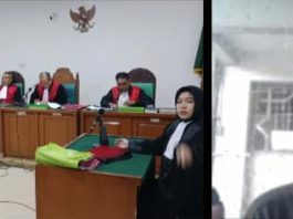 Lina datang dengan menggunakan baju hijau celana putih didampingi dua perempuan yang merupakan asistennya....