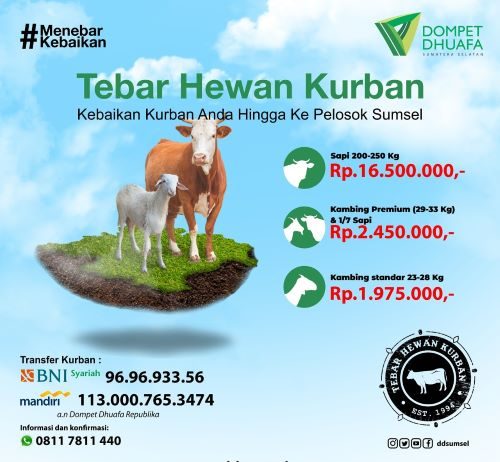 “Tahun lalu ada 150 hewan kurban yang kami tebar ke pelosok Sumsel. Tahun ini, Dompet Dhuafa Sumsel menargetkan 200 hewan kurban,” ujar Kusworo Nursidik, Lc, Pimpinan Cabang Dompet Dhuafa Sumsel, Jumat...