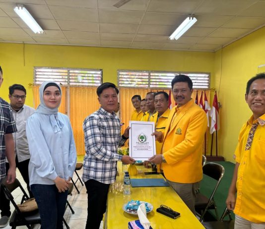 Wakil Ketua Dewan Perwakilan Rakyat Daerah Provinsi Sumatera Selatan (DPRD Sumsel) H Muchendi Mahzareki, SE, MM, mengambil formulir pendaftaran calon Bupati Kabupaten Ogan Komering Ilir (OKI) 2024-2029 di Dewan Pimpinan Daerah (DPD) II Partai Golongan Karya (Golkar) Kabupaten OKI, Senin (22/4/2024). )