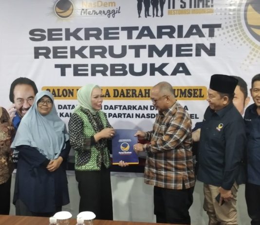 Bakal Calon Gubernur Sumatera Selatan (Bacagub Sumsel) Ir Hj Holda, MSi, resmi mengambil formulir dari Partai Nasional Demokrat (Nasdem) Sumsel, Minggu (5/5/2024).