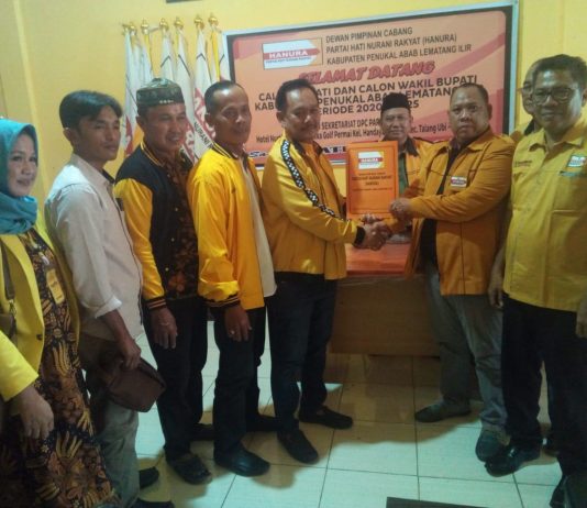 Ketua Dewan Pimpinan Daerah (DPD) Partai Golongan Karya (Golkar) Kabupaten Penukal Abab Lematang Ilir (PALI) Irwan, ST, mengambil formulir pendaftaran Calon Wakil Bupati (Cawabup) PALI 2021-2026 di di Partai Hati Nurani Rakyat (Hanura) PALI, Jumat (18/10/2019).