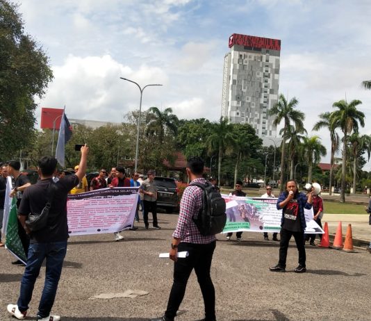 Puluhan massa dari Koalisi Masyarakat Peduli Pendidikan Sumatera (KMPPS) menggelar aksi unjukrasa di Halaman Gedung Dewan Perwakilan Rakyat Daerah Provinsi Sumatera Selatan (DPRD Sumsel), Selasa (11/6/2024). Aksi unjukrasa terkait Penerima Peserta Didik Baru (PPDB) Tahun 2024 yang dinilai bermasalah.