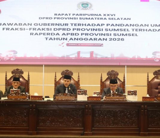 DPRD Provinsi Sumatera Selatan (Sumsel) menggelar rapat paripurna dengan agenda penyampaian laporan hasil pembahasan dua Rancangan Peraturan Daerah (Raperda) Inisiatif DPRD Sumsel, yaitu Raperda tentang Kesejahteraan Lanjut Usia dan Raperda tentang Pembinaan Ideologi Pancasila dan Wawasan Kebangsaan, Jumat (7/11/2025).