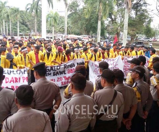 Ratusan mahasiswa yang tergabung dalam Aliansi Badan Eksekutif Mahasiswa (BEM) se-Sumsel kembali menggelar aksi unjukrasa di Gedung DPRD Sumsel, Rabu (21/2/2018). Namun, mereka kembali tidak dapat bertemu dengan Pimpinan maupun Anggota DPRD Sumsel.