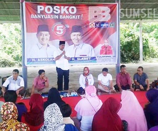 Ratusan masyarakat Kelurahan Pangkalan Balai Kecamatan Banyuasin III, Kabupaten Banyuasin menghadiri kampanye dialogis pasangan calon Bupati dan Wakil Bupati Banyuasin H Askolani- H Slamet yang bertempat di Lapangan Futsal Kelurahan Pangkalan Balai, Rabu (29/3/2018).