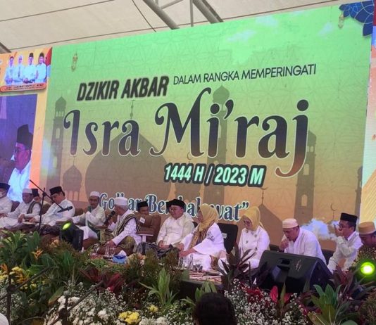 Memperingati Isra Miraj 1444 Hijriah/2023 Masehi, Dewan Pimpinan Daerah (DPD) Partai Golongan Karya Provinsi Sumatera Selatan (Golkar Sumsel) bershalawat bersama di Dining Hall, Jakabaring Sport City (JSC), Sabtu (18/2/2023).
