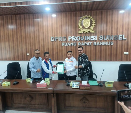 Aksi damai tersebut diterima Wakil Ketua Komisi V DPRD Sumsel Mgs Syaiful Padli, ST, MM, di Ruang Rapat Badan Musyawarah (Banmus) DPRD Sumsel,...