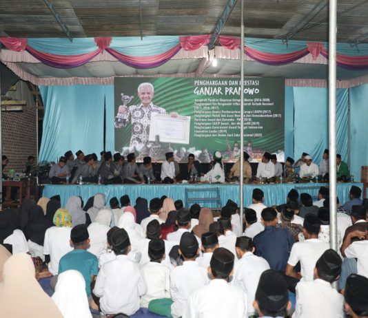 Santri Dukung Ganjar (SDG) bersama 500 santri dan ulama Kabupaten Musi Rawas (Mura), Sumatera Selatan (Sumsel) menggelar 'Gema Selawat dan Doa Bersama untuk Negeri' di Pondok Pesantren Hidayatul Thullab, Desa Leban Jaya, Tuah Negeri, Kabupaten Mura, Kamis (6/10/2022).