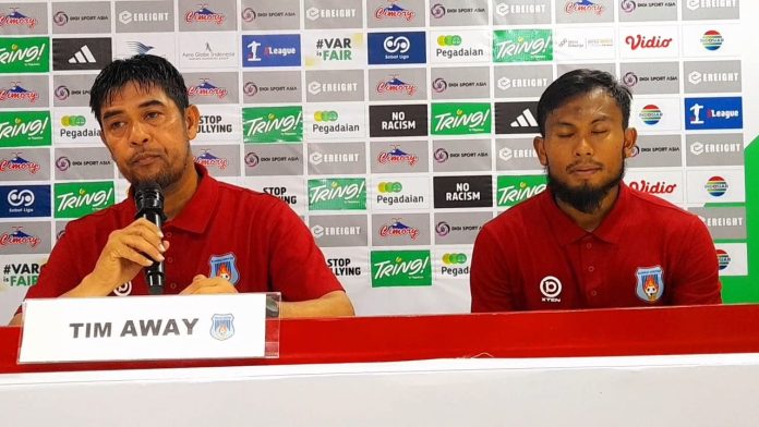 KONFERENSI PERS---Pelatih Sumsel United Nilmaizar bersama Ichsan Kurniawan memberikan keterangan dalam sesi konferensi pers pralaga, Jumat (23/1/2026). (FOTO: MEDIA OFFICER SUMSEL UNITED).