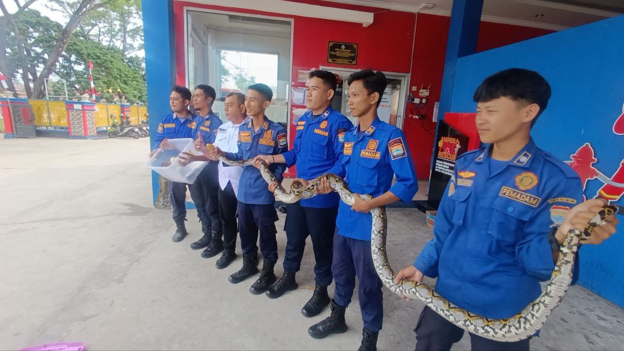 Seekor ular sawah sepanjang 3 meter berhasil dievakuasi tim Rescue Damkar Kota Palembang dari semak-semak belakang rumah warga di Jalan Setunggal, Kelurahan 8 Ilir, Kecamatan Ilir Timur II, Rabu (13/8/2025) pagi.