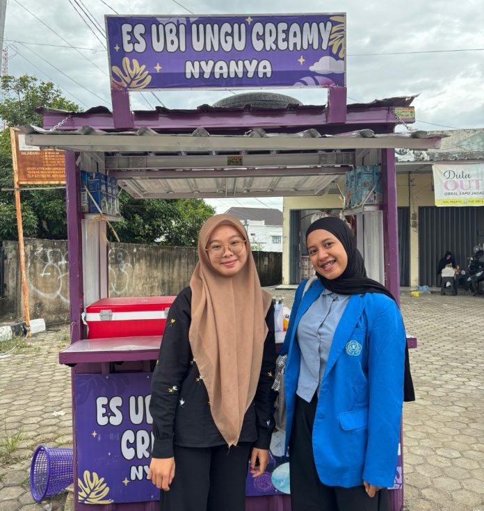 HOBI JADI BISNIS---Dimulai dari hobi dan kejelian melihat tren, Es Ubi Ungu Creamy hadir menemani keseharian warga Palembang di RA Abusamah dan Kambang Iwak. (FOTO: Istimewa/Ishika Salsabila).