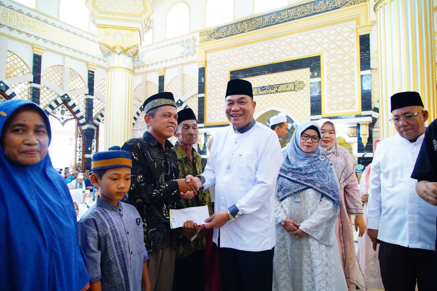 ​Masjid yang dikenal sebagai salah satu yang termegah di Muba ini dipadati ratusan warga sejak pagi hari. Kehadiran Bupati turut didampingi oleh Dandim 0401/Muba Letkol Kav Fredy Christoma, Ketua TP PKK Muba Hj Patimah Toha, serta jajaran kepala perangkat daerah lainnya.