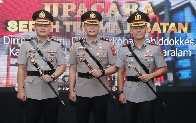 Selain Kapolres, pada hari yang sama juga dilaksanakan Sertijab dua direktur dan kabid.