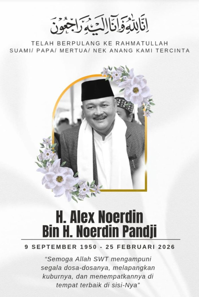 Kabar duka menyelimuti Bumi Sriwijaya. Mantan Gubernur Sumatera Selatan dua periode (2008–2018), H. Alex Noerdin, dikabarkan meninggal dunia di Rumah Sakit Siloam Semanggi Jakarta, Rabu (25/2/2026) sekitar pukul 13.36 WIB.