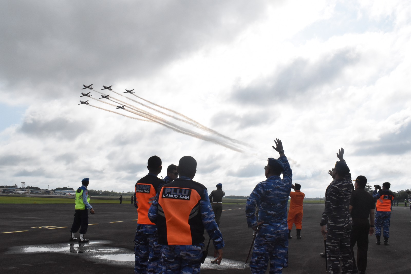 Saat pelepasan tampak Hercules Skadron Udara 31 Lanud Halim Perdanakusuma Jakarta yang merupakan advance team JAT, take off disusul 7 pesawat JAT yang melaksanakan flypast dengan smoke diapresiasi penuh bangga oleh sekitar 500 orang perwakilan anak-anak sekolah binaan Lanud SMH. Kemudian 1 pesawat Hercules Skadron Udara 32 dari Lanud Abdulrachman Saleh Malang menyusul sebagai support JAT take off.