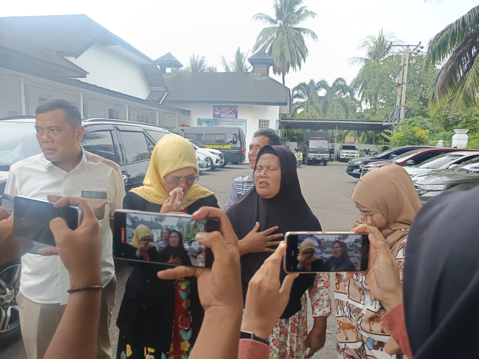 “Tidak terima, mintak tolong adil. Seumur hidup jugo, anak aku mati, dio (terdakwa-red) jugo harus mati jugo,” ujar Rahayu sambil menanggis di PN Palembang usai sidang.