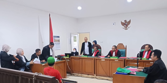 TUNTUTAN--Sidang perkara terdakwa Eko Sempurna di PN Palembang, Senin (20/4/2026). Dalam persidangan JPU menyampaikan surat tuntutan kepada majelis hakim. (FOTO: SS1/ANTON R FADLI)