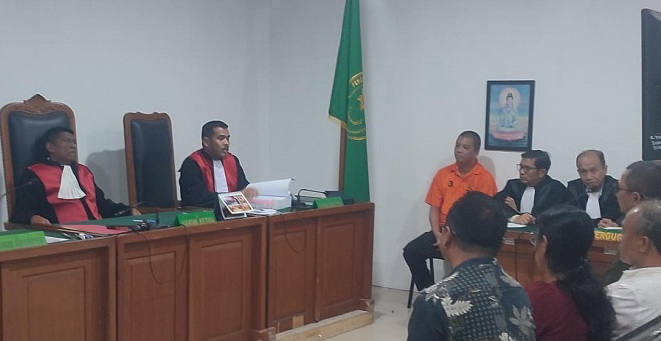 Terdakwa Suseno Kornelius, Direktur PT Perintis Sebalai Makmur Palembang menjalani persidangan di Pengadilan Negeri (PN) Palembang, Selasa (18/11/2025). Suseno didakwa melakukan penipuan.