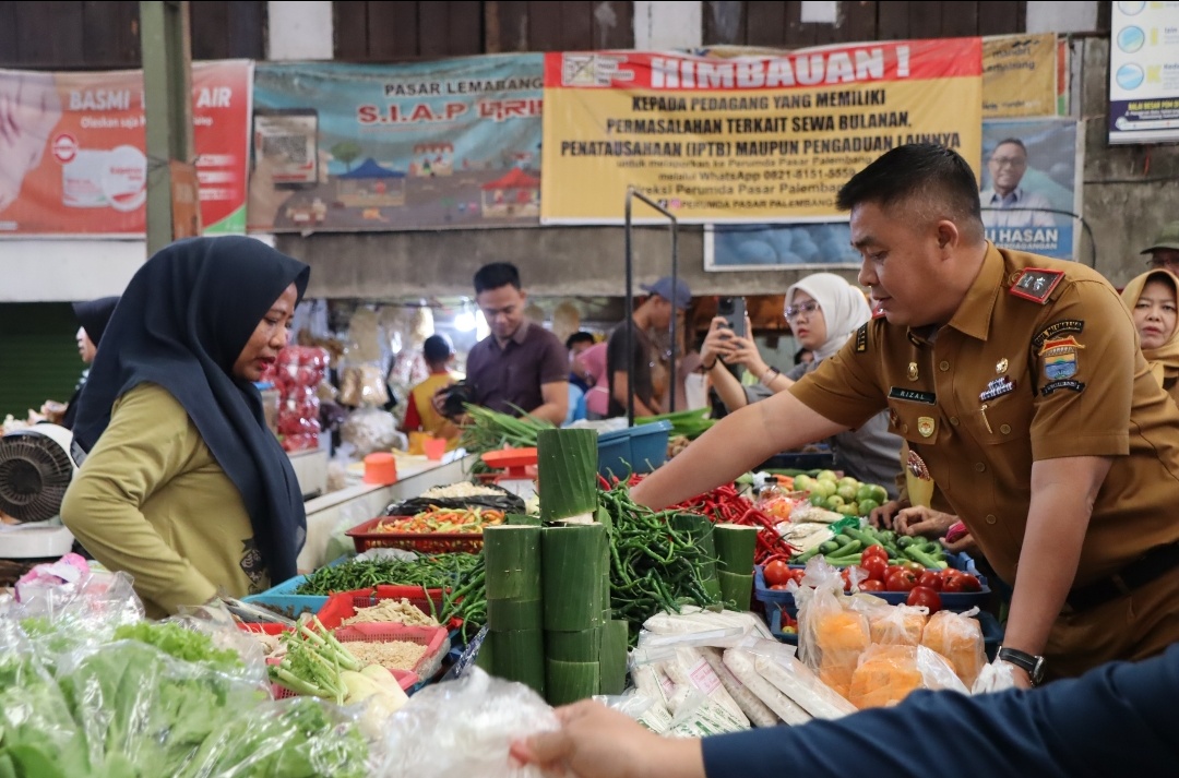 Sekretaris Daerah (Sekda) Kota Palembang Aprizal Hasyim melakukan inspeksi mendadak (sidak) ke Pasar Tradisional Lemabang dan Lotte Grosir PTC Mall, Senin (2/3/2026). Langkah ini diambil untuk menjamin stabilitas harga, ketersediaan pasokan, serta keamanan konsumsi pangan masyarakat selama Ramadan 1447 H.