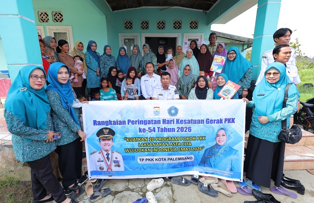 JEMPUT BOLA---Ketua TP PKK Kota Palembang Dewi Sastarani, melakukan aksi jemput bola dilakukan di Kelurahan Srimulya, Kecamatan Sematang Borang, Rabu (11/3/2026). (FOTO: DISKOMINFO).