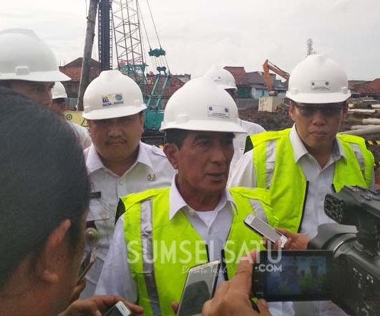 Pjs Walikota Palembang Akhmad Najib, meninjau dua pembangunan mega proyek yakni pembangunan Jembatan Musi IV dan pembangunan Pompanisasi Sekip bendung.