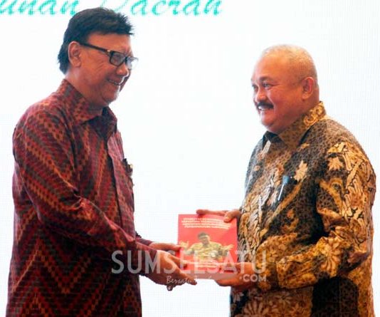 Menteri Dalam Negeri (Mendagri) RI Tjahjo Kumolo datang ke Palembang menghadiri Rapat Koordinasi dan Bimbingan Teknis Penguatan Jaringan Informasi Geospasial Nasional di Tingkat Daerah Regional Sumatera diselenggarakan oleh Badan Informasi Geospasial (BIG) di Hotel Aryaduta, Kamis (15/3/2018).
